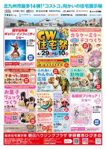 2026年4月29日(日)から5月10日(日)までコストコ向かい住宅展示場、朝日ハウジングプラザ学研都市ひびきのにて「GW住宅祭」が開催されます。
