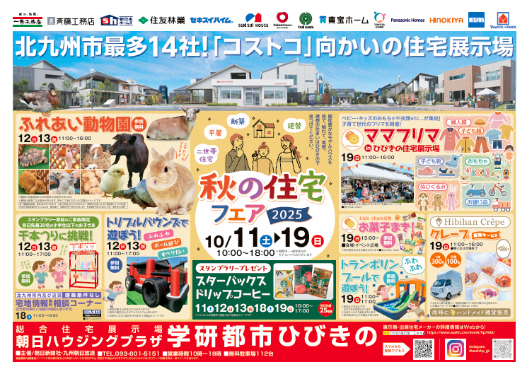 秋を感じる過ごしやすい気温になってきましたね。2025年10月19日にコストコ向かいの住宅展示場でをママフリマとお菓子まきを開催します。住宅展示場と聞くと「家を建てる人向け?」と思いがちですが、実は親子で一日楽しめるイベントが盛りだくさん!家族で笑顔になれるイベントがたっぷりなので、ぜひ週末のお出かけ先候補にしてくださいね。