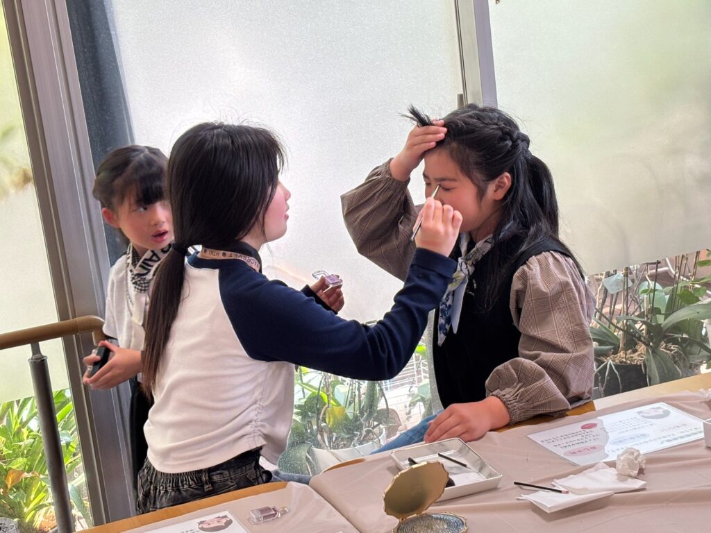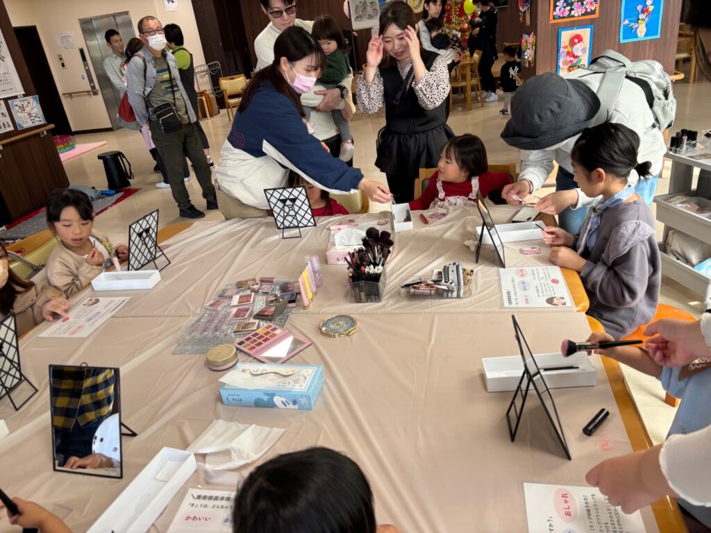 自分のメイクアップからスタートするので、鏡の前に座った瞬間からもうワクワクが止まりません。チークやリップを選ぶ姿は、とても真剣で可愛らしく、周りのママたちも思わず笑顔に。ぴったりのコスメを選んであげる姿は、まるで本物のメイクアドバイザー!ふわふわのブラシでそっとメイクをのせてあげる姿は微笑ましかったです。