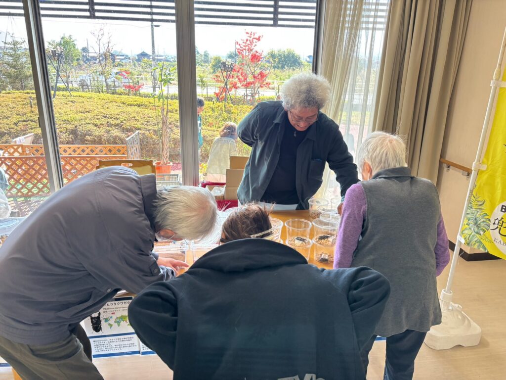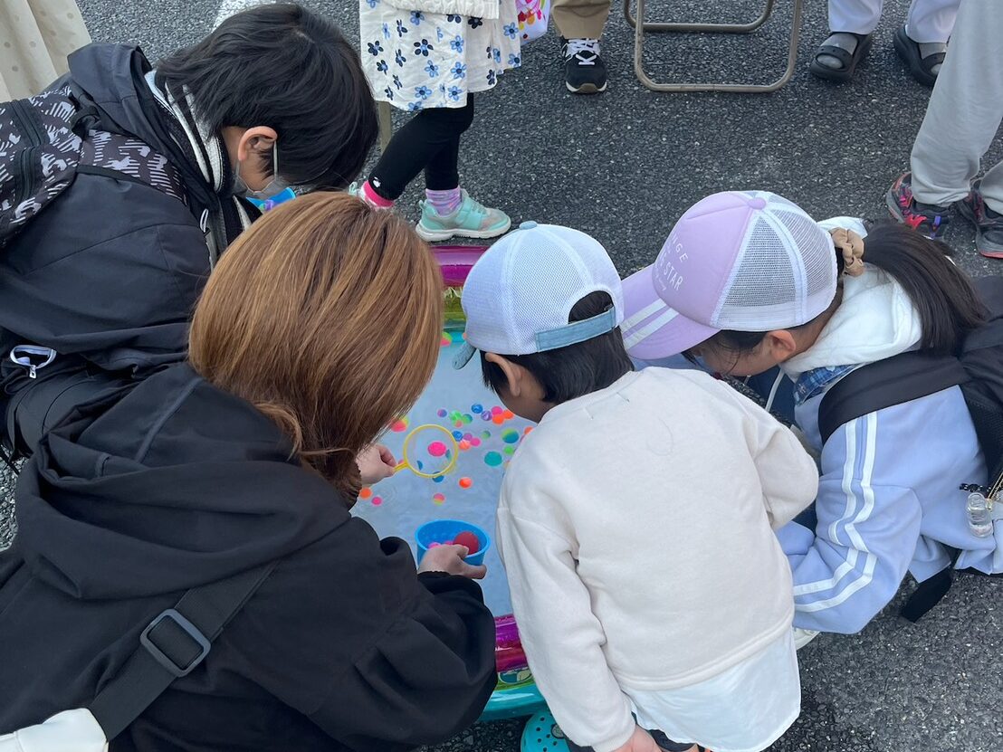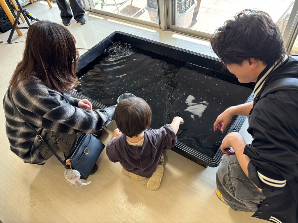 小さくてカラフルなメダカたちがたくさん泳ぐ水槽をじっくり観察。狙いを定めて一生懸命すくっていました。子どもから大人まで夢中になってすくっていました♪