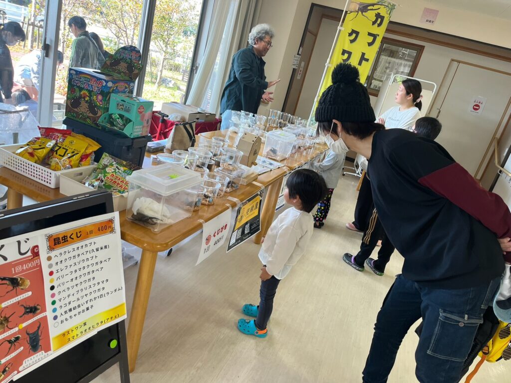 普段あまり見かけない種類のカブトムシやクワガタが販売してあり、釘付けの子どもたち。くじもあり、開始早々ヘラクレスオオカブトを当てている子もいました!凄い!!