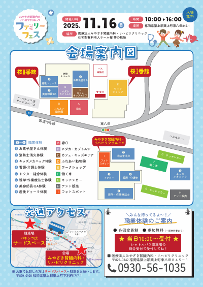 福岡県築上町にあるみやざき腎臓内科・リハビリクリニックで、地域の方々が楽しめるイベント「ファミリーフェス」を開催しました。
