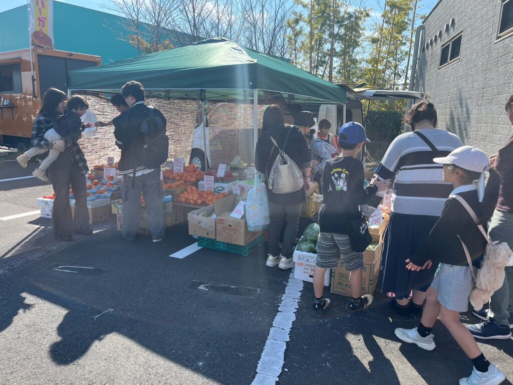 会場では新鮮な野菜と果物が販売されていました。みかんの試食をもらい食べてみるととっても甘い!野菜も果物もお手頃価格で、袋いっぱいにお買い物して帰る方がたくさんいました。