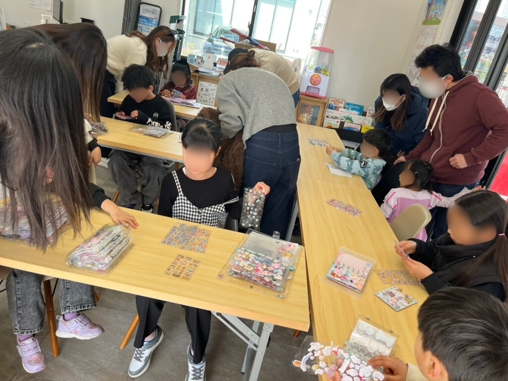 貼り終わったら交換会スタートです。自慢のシール帳を見せ合いながら可愛いシールをゲットしよう!最初は緊張している子どもたちも、終わるころにはみんな仲良し