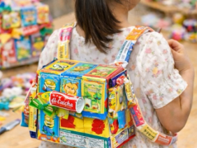 お菓子だけで作る夢のようなバッグを作りましょう!本当に背負うことができますよ☆