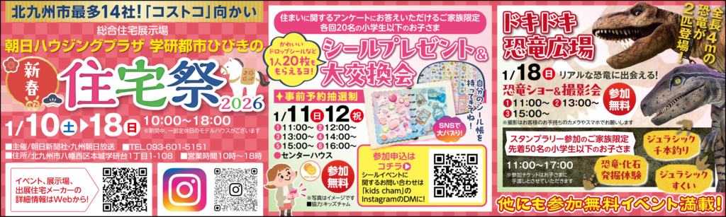 シール選びに交換会、迫力満点の恐竜イベントまで、子どもたちの「楽しい!」がぎゅっと詰まった2日間。2026年の最初のイベントを笑顔あふれるものにしましょう!コストコ向かいにある展示場で開催されますので、お買い物のついでにでも、ぜひご家族そろって遊びに来てくださいね。