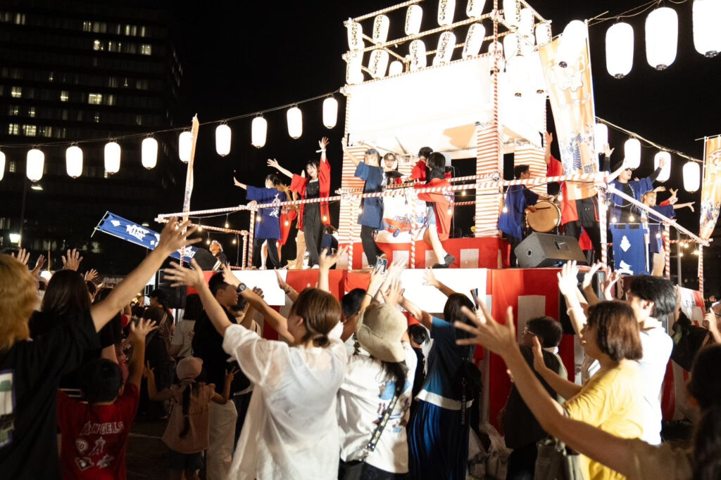 見どころ①:巨大やぐらを囲んで踊る“オリジナル盆踊り”
