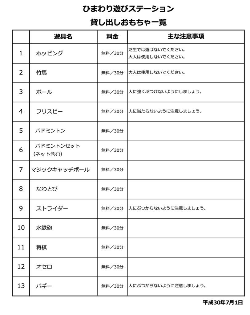 大きなアスレチックがあるだけでなく、バトミントンセットやボール等の遊具貸し出しも行っていますので、その辺も詳しくリポートします♪