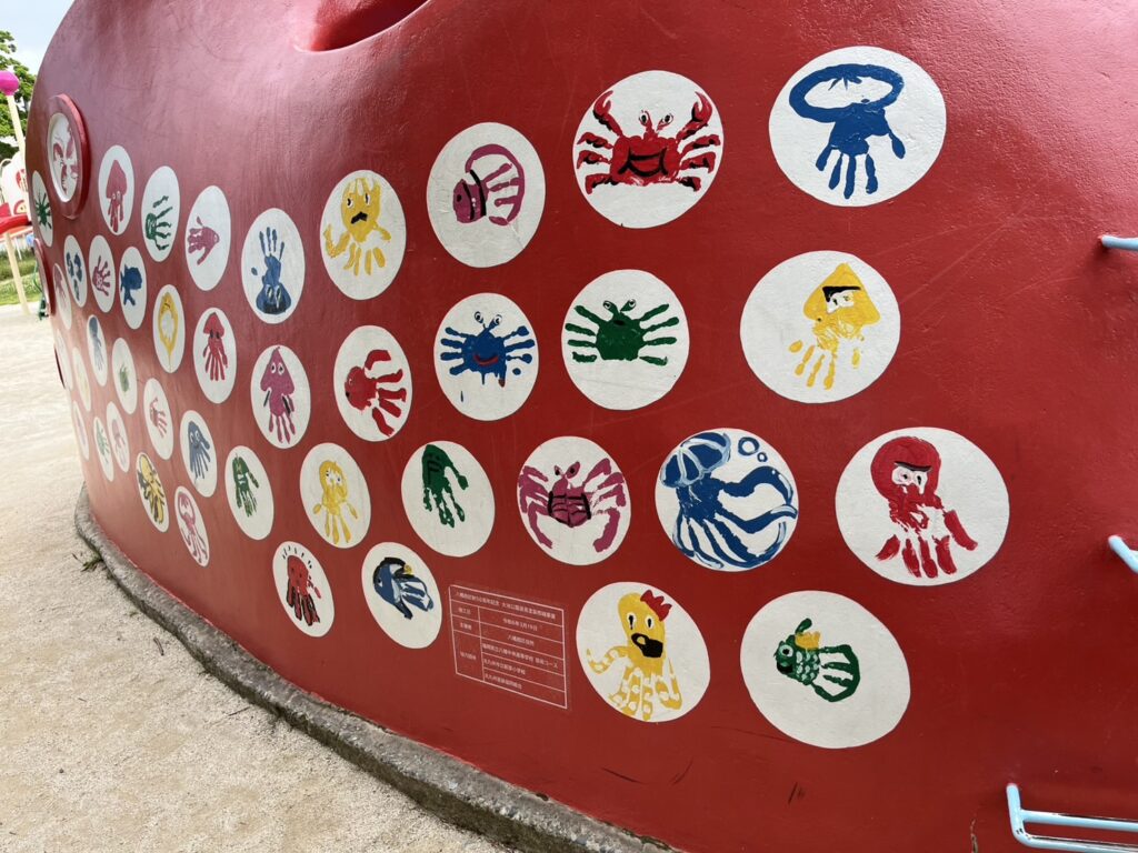 どーーーーん!と圧倒的存在感のこちらがタコの滑り台。真正面の滑り台が一番速く、うまく着地しないと手を擦りむいてしまいます(息子は前に手をついて擦りむきました💦)。