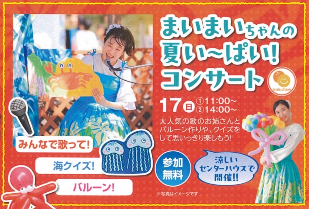 先日開催された「好きを子どもにvol.5」職業体験イベントでステージMCを務めてくれた、歌のお姉さん「まいまいちゃん」の楽しいコンサート。バルーンづくりやクイズもありますよ。