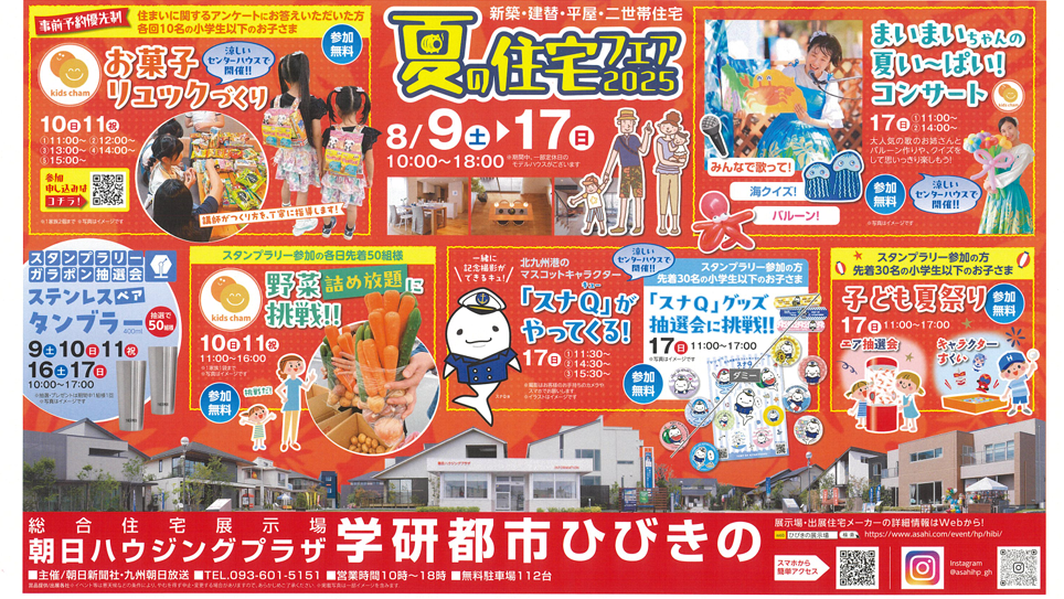 もうすぐ皆さんお待ちかねの夏休みが始まりますね。約一か月の予定、なかなか決まらないですよね。何をしようかな~とお悩みのママさんパパさんにおすすめのイベントが朝日ハウジングプラザ学研都市ひびきのにて開催されます!