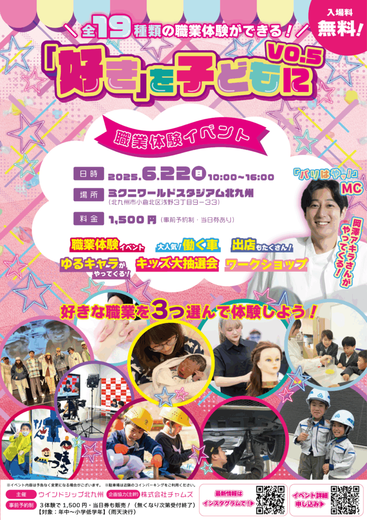 2025年6月22日に北九州市のミクニワールドスタジアムで職業体験イベント「好きを子どもにvol.5」を開催しました。今回のコンセプトは「憧れの職業を身近に」!