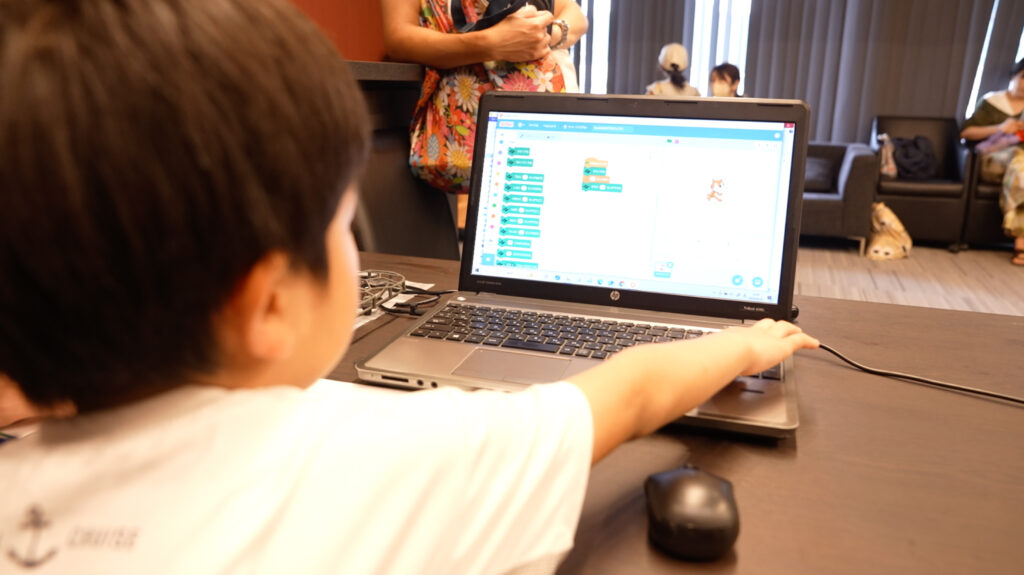 自分で作った目的地に飛んでいくドローンを真剣に見つめる子どもたちの姿が印象的でした。また自分だけのイラストや音楽を製作し、想像力をぐんと伸ばす機会にもなりましたね。プログラミングからデザインまで幅広く楽しむことができ、充実した体験でした。